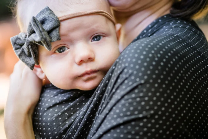 P.S - my dress is old Anthropologie from a few years ago, and Penny's romper is Old Navy. Wrap is a Solly Baby Wrap!