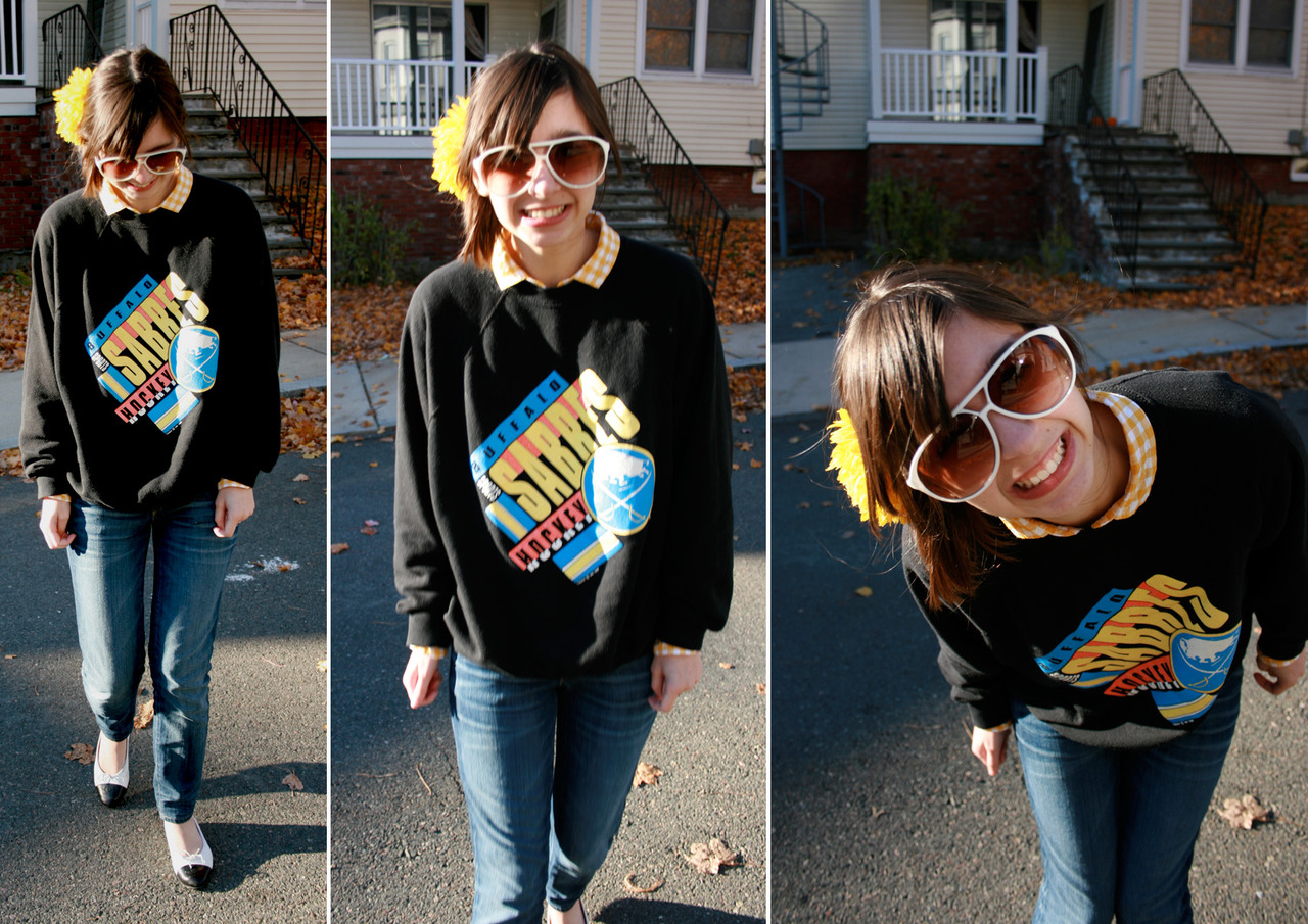 But anyway, its another Sabres game night! woo hoo! Plus - perfect just sweatshirt (no coat) weather, and a comfy day. So that’s how I arrived at this outfit.