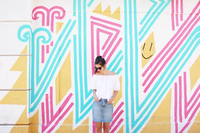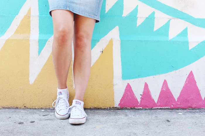 #PHOTOGENICWALL Holly Darling August 4, 2015 sunglasses: Warby Parkertop: Loftskirt: Loftnecklace: shopHollyDollysneakers: Converse
