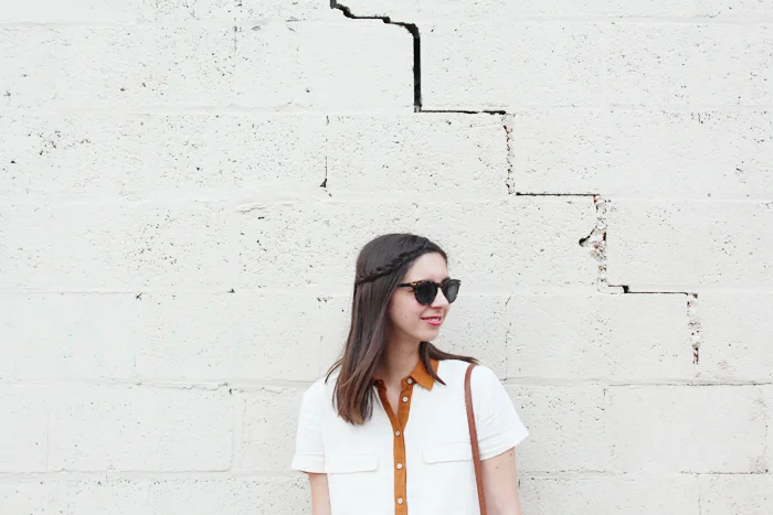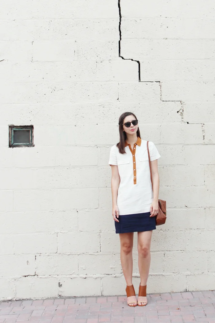 COLORBLOCKED Holly Darling August 7, 2015 sunglasses: Warby Parkerdress: Lou & Greypurse: H&M (old)heels: Loft
