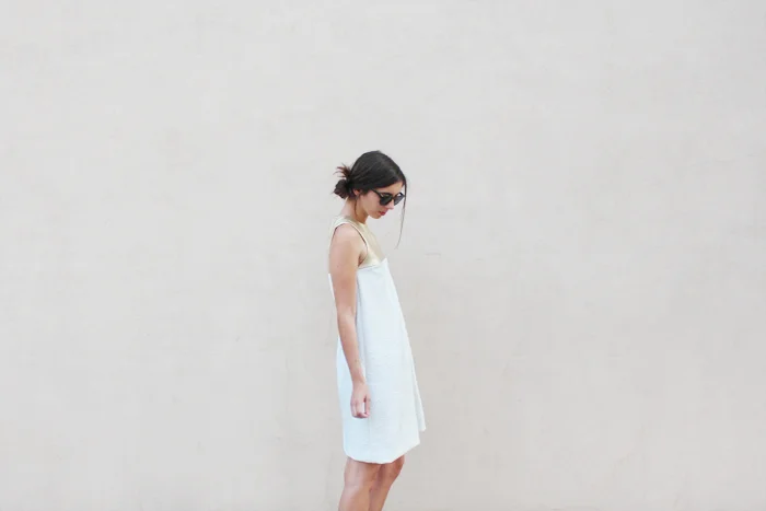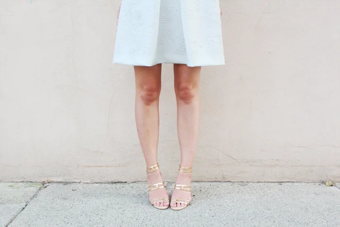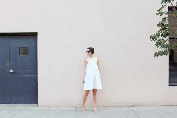 About the dress - this white scuba knit was one of my prized finds from my NYC fabric shopping trip. It's a shame you can't see the embossed detail in the full length shots. It's ridiculously pretty. Do you follow me on Instagram? I posted a before shot of my sketch and a close up of the fabrics!