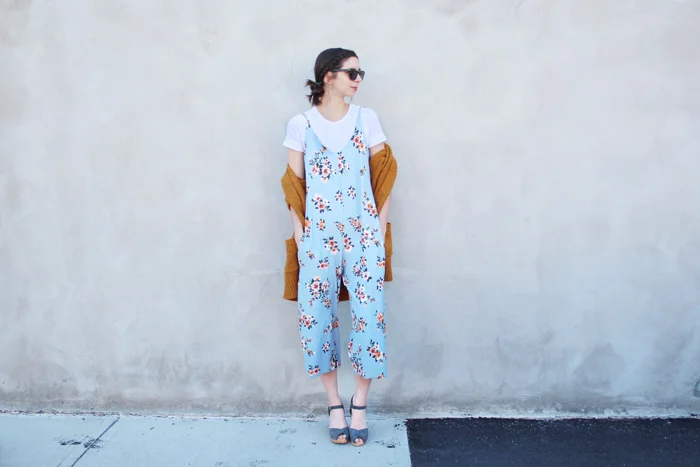 I looked and looked and looked for a jumpsuit in this shape, and I finally found one! It is a free pattern download with the purchase of Mimi G's may 2017 issue of Sew Sew Def. You can see her post here. I had to make a few adjustments to accommodate the really stretchy jersey knit that I used (pattern calls for woven), but I love how it came out! I've been obsessed with this shaped jumpsuit lately, so I'm sure I'll be making a few more of these for summer.