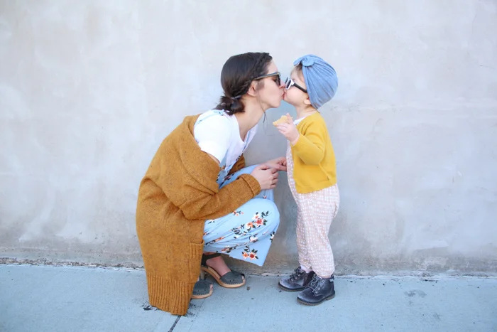 Also, how cute is P?! I didn't originally intend to include her in these photos, but she was just too cute in her jumpsuit like Mama not to. And just before we walked out the door, I put on my sunglasses. And she looked up at me, pointed at her eyes, and pointed at herself. She wanted to wear hers too like me. I mean, seriously, this girl <3.